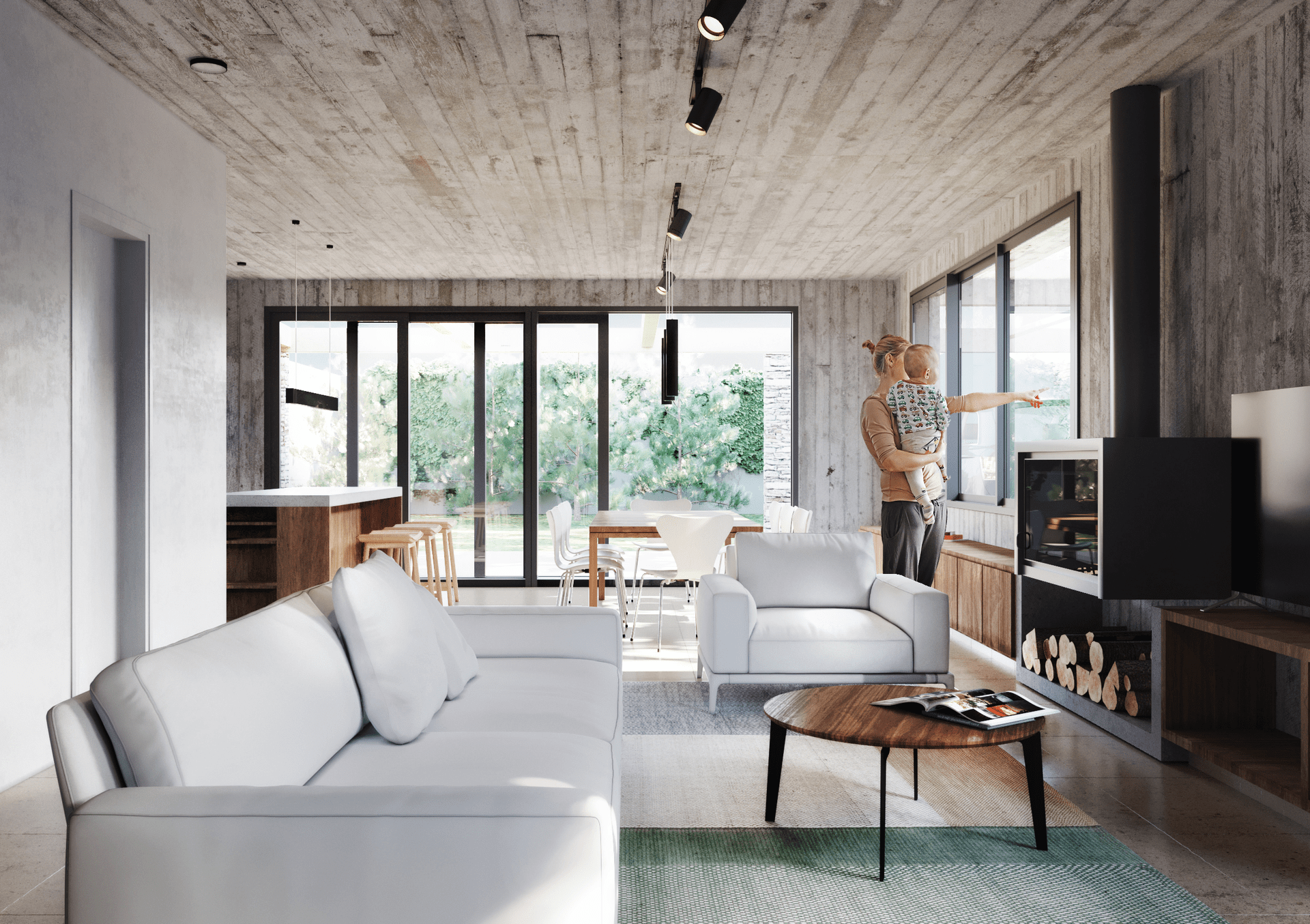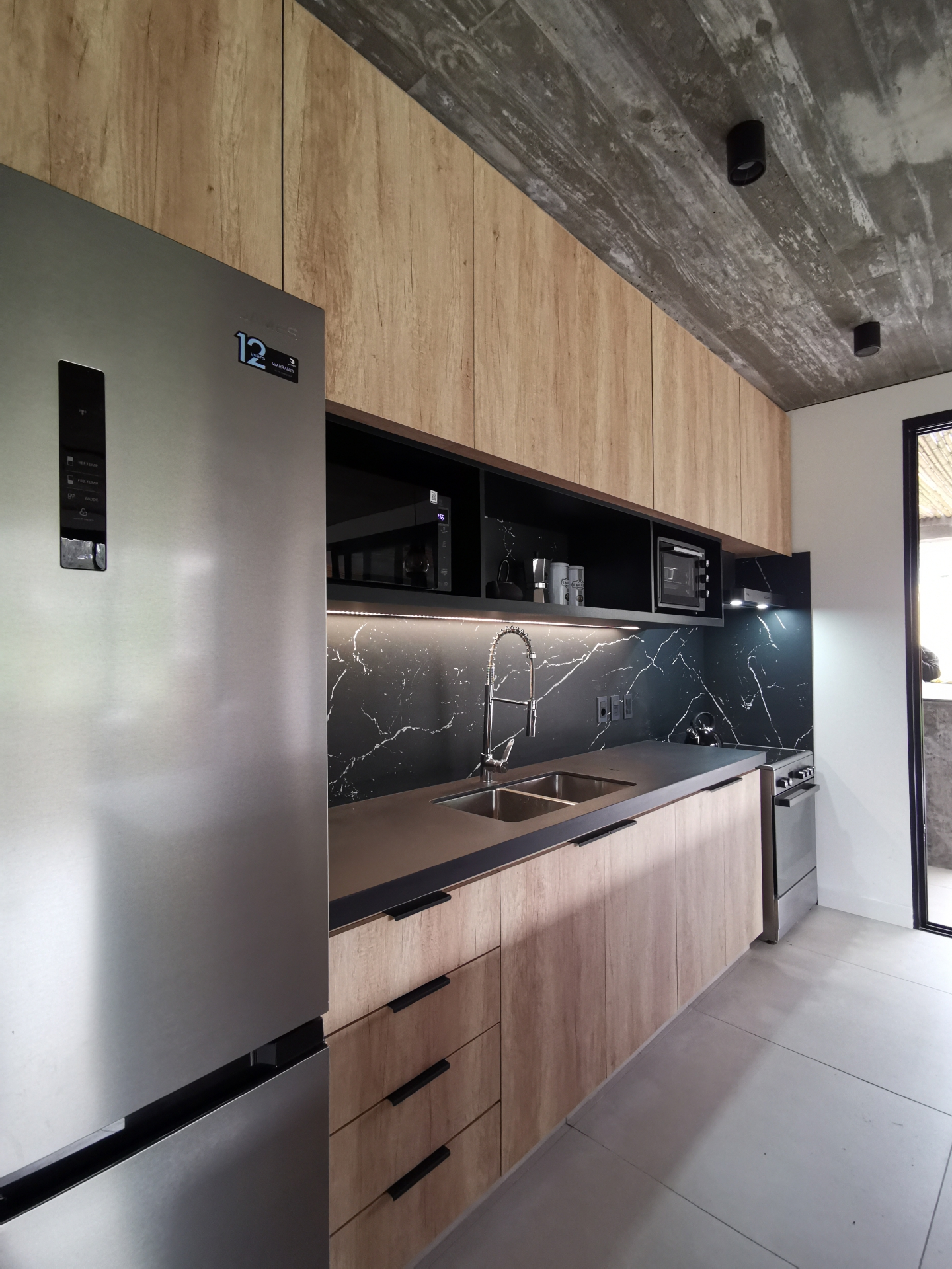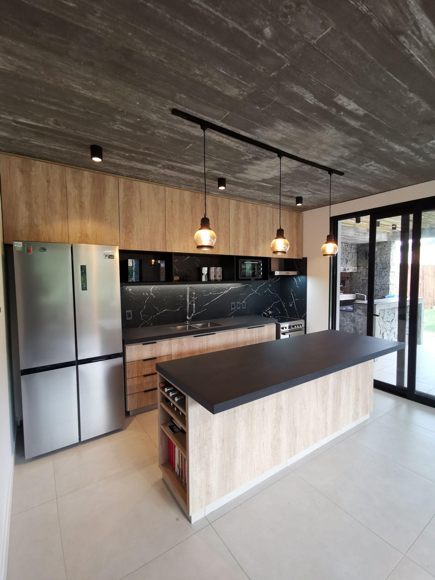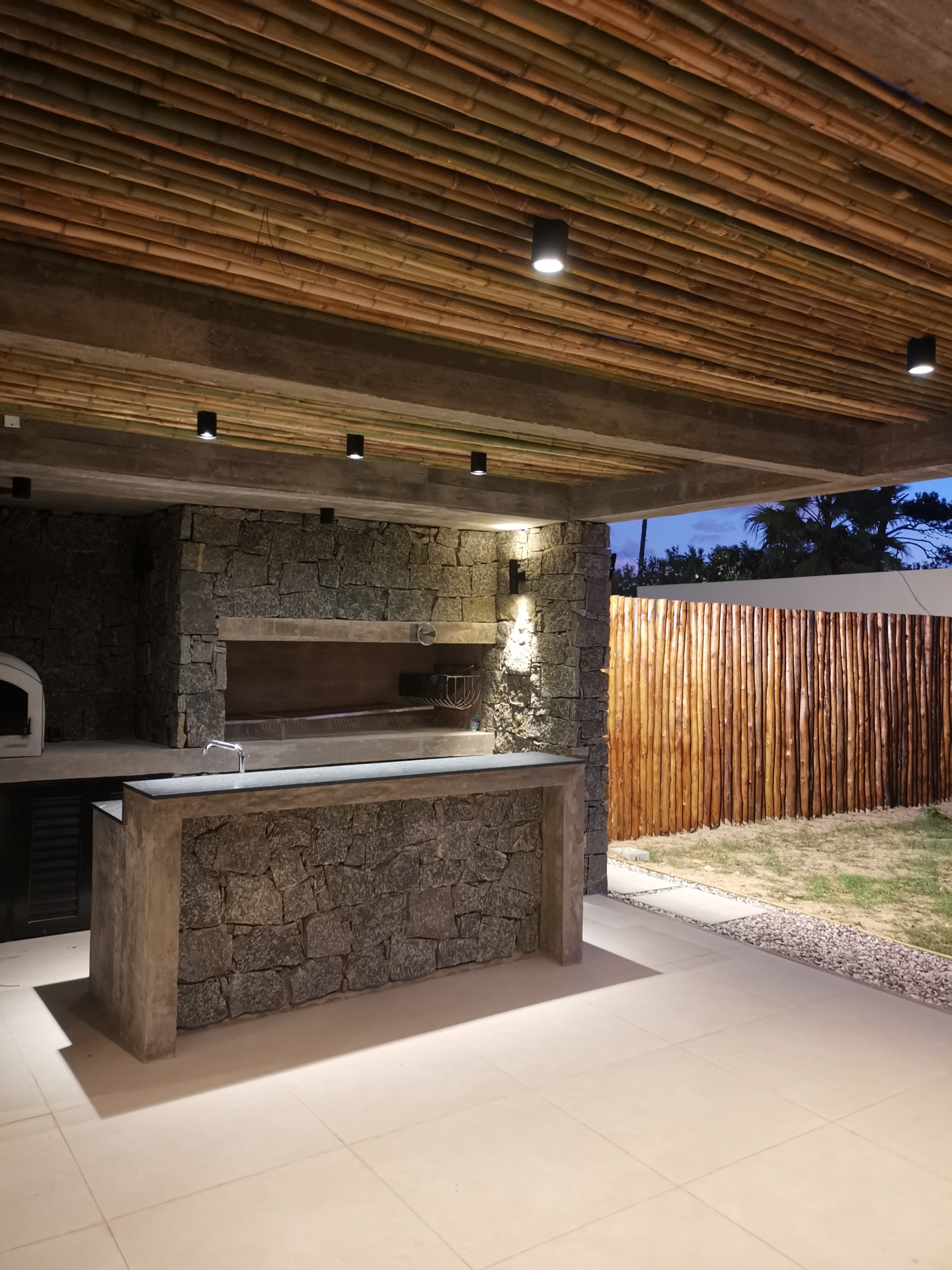 En planta baja los espacios de mayor jerarquía son; living y cocina / comedor. Estando estos últimos dos vinculados completamente al exterior donde se ubica una zona techada con parrillero y horno de barro, a continuación de este se encuentra el patio de la vivienda.