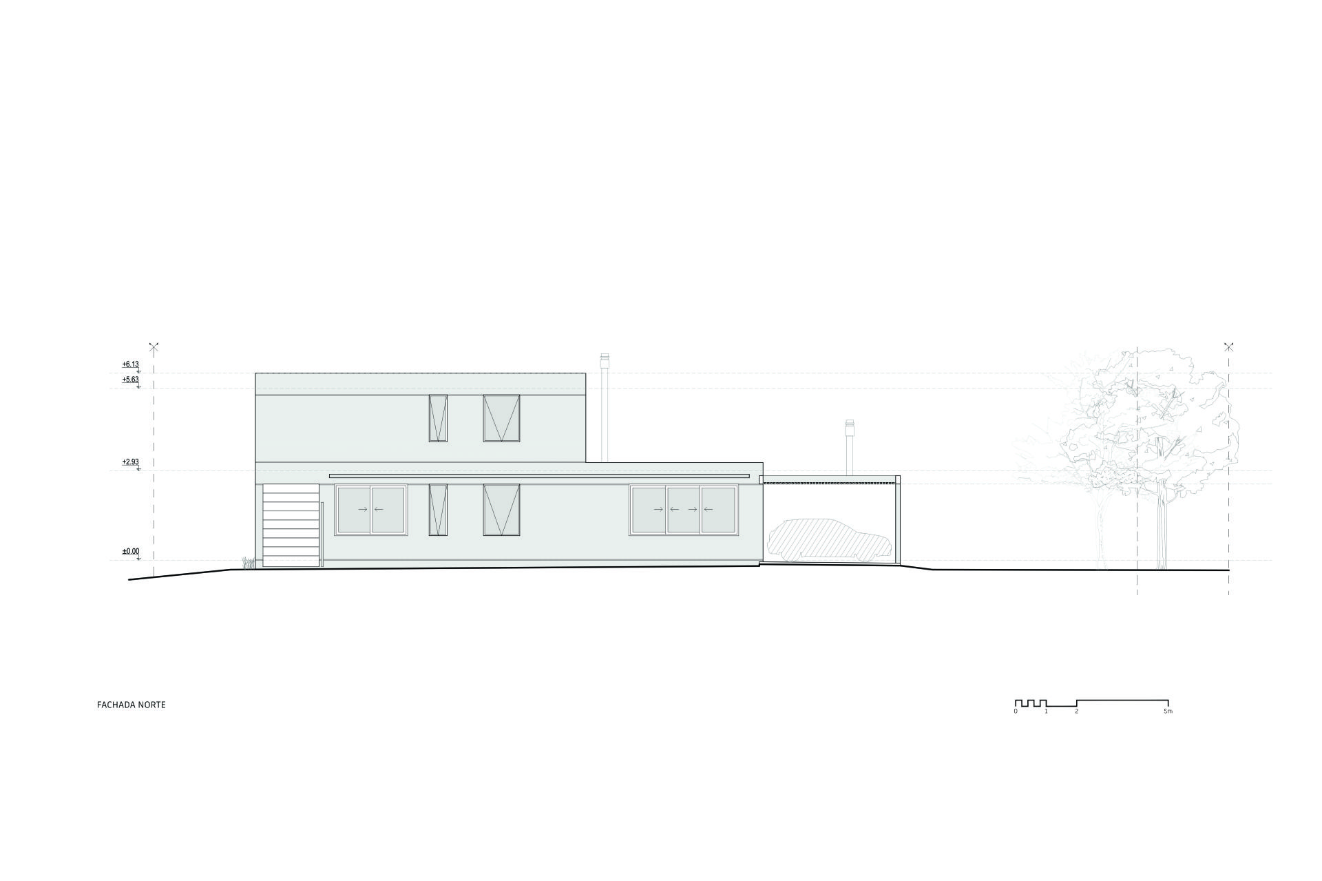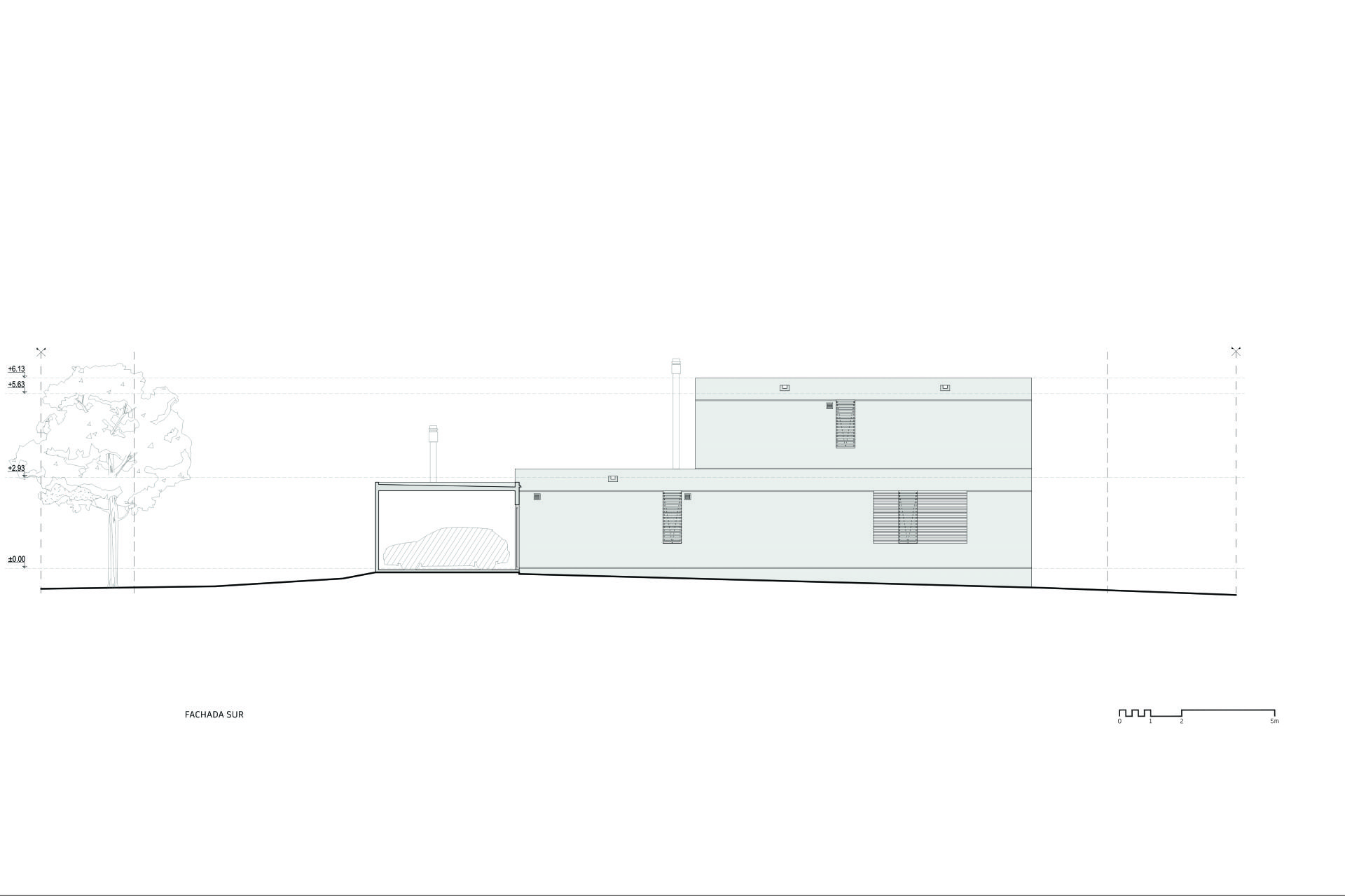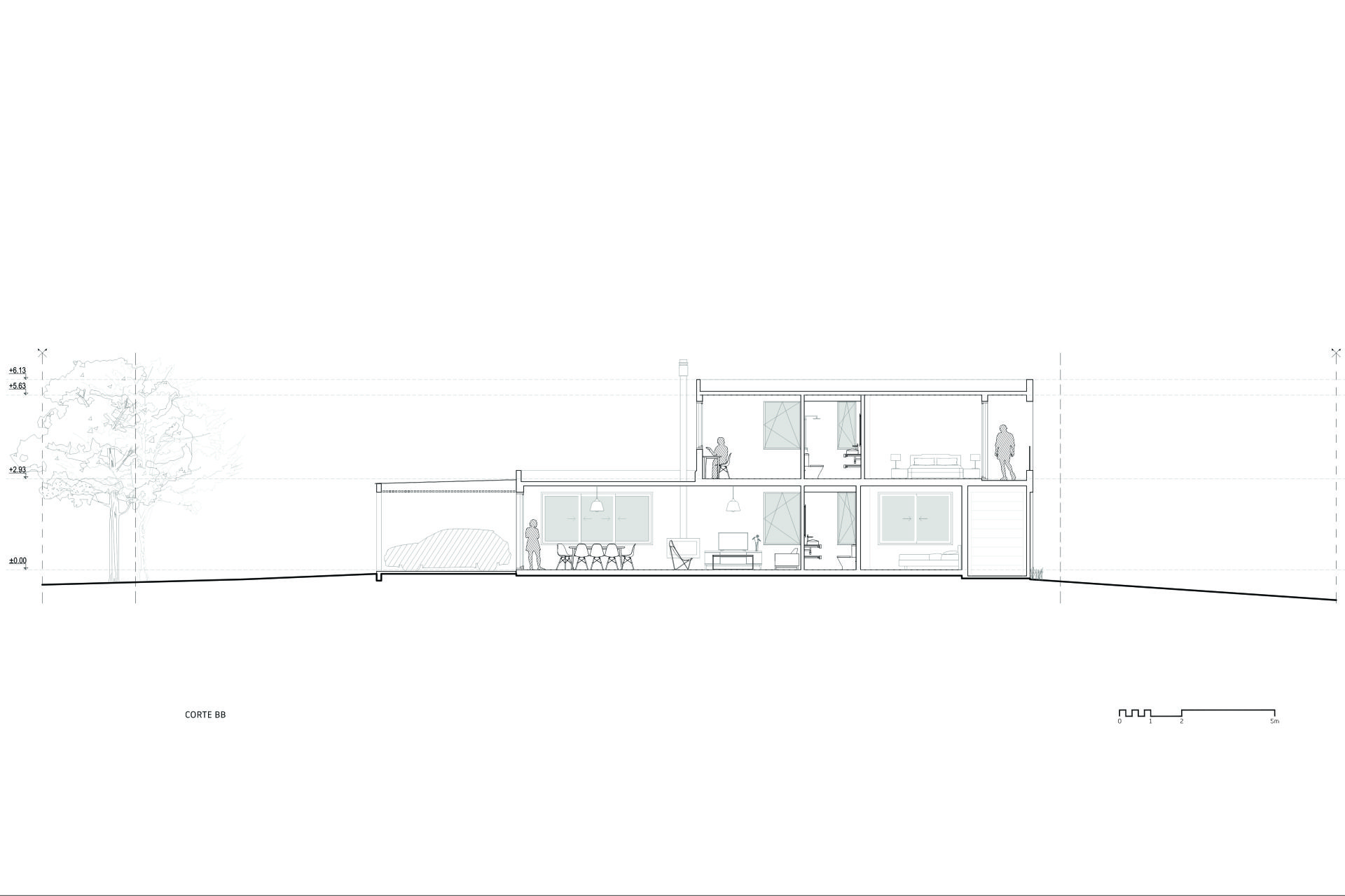 En planta baja el uso veraniego de la vivienda es protagonista para marcar el orden de los espacios, teniendo a disposición desde la entrada la zona de depósito (evitando así el traslado de elementos de playa por la vivienda). El dormitorio principal, en suite, se ubica en planta baja siendo accesible sin necesidad de subir escaleras.