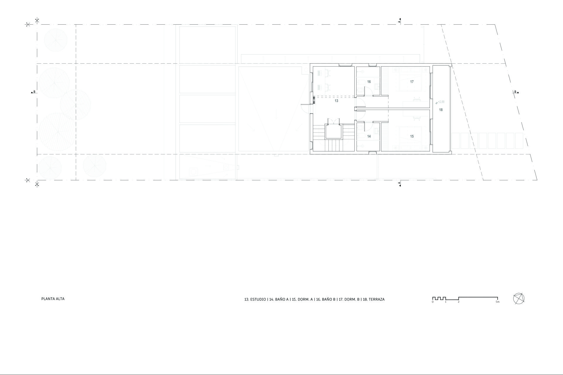 En planta alta se ubica un amplio espacio con la función de estudio y a su vez sirve de antesala a los dormitorios. Desde este espacio se puede acceder a la terraza donde se tiene vista a la playa de Montoya. Ambos dormitorios en planta alta cuentan con baño en suite, con salida a un balcón orientado al frente de la vivienda, a su vez con vistas a las playas del este.